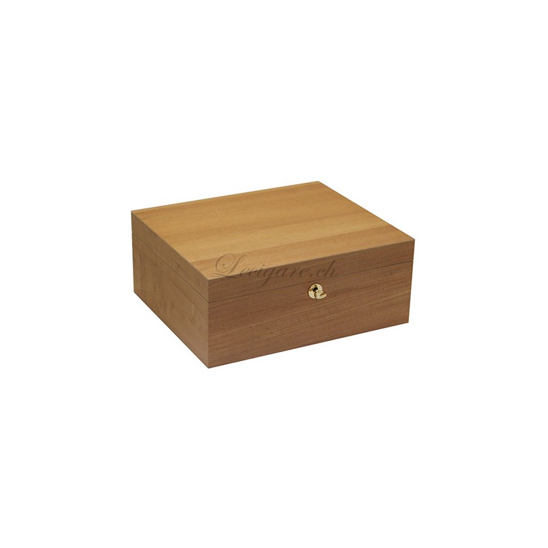 Humidor for 70 cigars natural cedar finish. German design, this humidor has a lifetime warranty. It comes with a humidification system, a hygrometer and distilled water. The tray is an option.